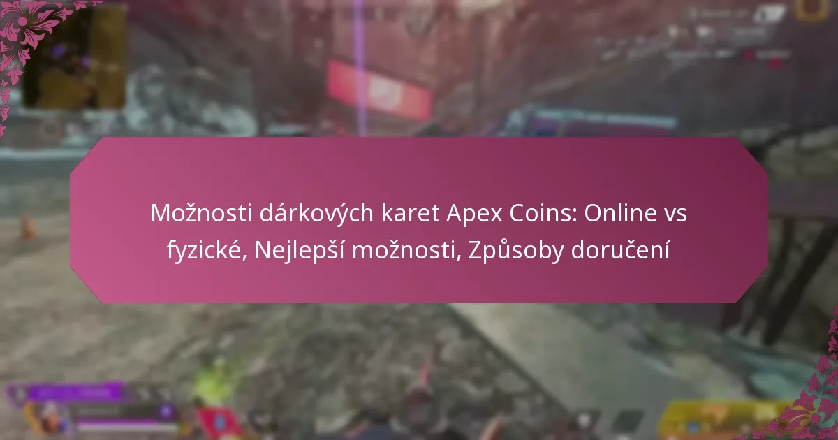 Při výběru mezi online a fyzickými dárkovými kartami Apex Coins je důležité zvážit faktory, jako jsou pohodlí, dostupnost a způsoby doručení. Online možnosti obvykle nabízejí okamžité doručení, zatímco fyzické karty poskytují výhodu osobních transakcí. Každá volba má své jedinečné výhody, což činí důležité zhodnotit své preference před nákupem.